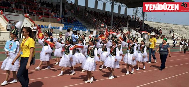 Türkiye Cumhuriyeti’nin kurucusu Ulu Önder Atatürk’ün çocuklara armağan ettiği “23 Nisan Ulusal Egemenlik ve Çocuk Bayramı” Başkent Lefkoşa’da Atatürk Anıtı’nın ardından Atatürk Stadyumu’nda düzenlenen törenle kutlandı.