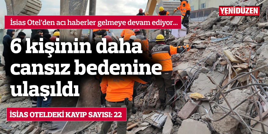 Başbakanlık, Adıyaman’daki İsias Otel enkazında yürütülen arama ve kurtarma çalışmaları neticesinde Kıbrıslı Türk kafilesinden 6 kişinin daha cansız bedenine ulaşıldığını açıkladı.