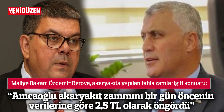 Maliye Bakanı Özdemir Berova, Bakan Amcaoğlu’nun akaryakıta 2,5 TL’lik zam öngörüsünün bir gün önceki verilere dayandırdığını belirterek “Biz FİF değişiminin olacağı günden veriler üzerinden bakıyoruz” diye açıkladı.