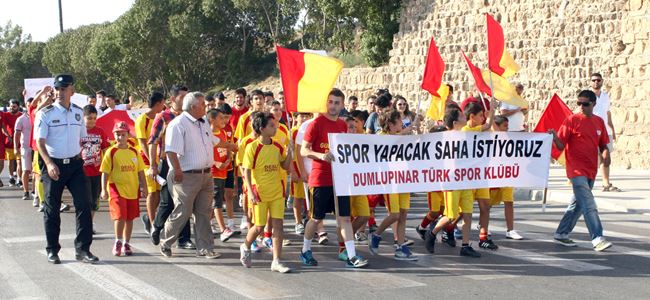 Antrenman yapacak saha bulma sıkıntısı çeken Birinci Lig ekibi Dumlupınar dün Mağusa Anıt çemberine kadar yürüyerek yaşanan durumu protesto etti. Akademi ve genç takım oyuncuları bir süre top oynayacak tepkilerini dile getirdi