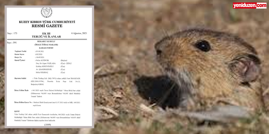 Tarım Dairesi Müdürlüğü tarafından açılan “Mum Blok Fare Zehiri Temini” ihalesinin sonucu tartışmaya neden oldu. Taraflardan Yolo Trading LTD’in yetkilisi Fırat İmamzade, ihalenin kendilerine verilmemesine yönelik gerekçenin ‘temelsiz’ olduğunu savundu, karara itiraz etti.