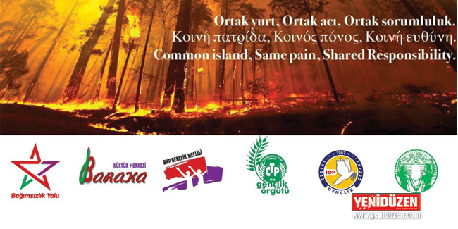 Kuzey ve güneyden bazı siyasi parti gençlik örgütleri ile sivil toplum örgütleri, 4 gündür devam eden yangınla ilgili ortak açıklama yaptı