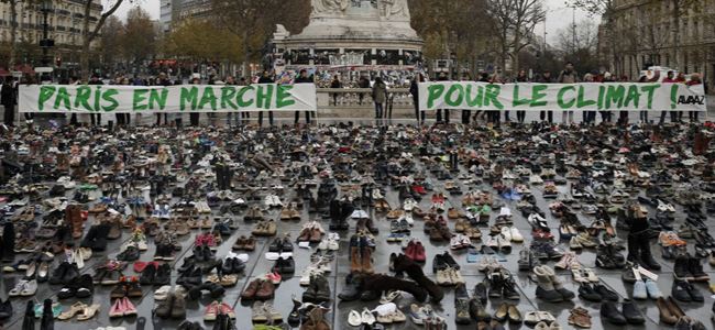 Paris'te ayrıca yürüyüşün yasaklanmasına tepki olarak Cumhuriyet Meydanı'na yüzlerce çift ayakkabı bırakıldı. Ayakkabılar arasında iklim değişikliğine karşı acil eylem çağrısı yapan Papa Francesco'nun verdiği bir ayakkabı da vardı.