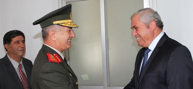 Tümgeneral Baki Kavun ziyarette, Yorgancıoğlu’na Güvenlik Kuvvetleri Komutanlığı’nın faaliyetleri hakkında bilgi verdi.