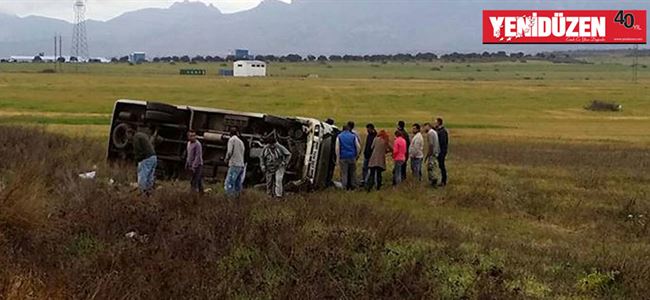 Mağusa-Lefkoşa anayolunda akşam saatlerinde meydana gelen trafik kazasında, boş minibüs devrildi.