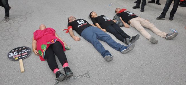 Öğretmenler, kamu çalışanlarının aylık maaş, ücret ve ek ödeneklerini düzenleyen, “Göç Yasası” olarak da nitelendirilen “47/2010” sayılı yasayı yola yatarak protesto etti.