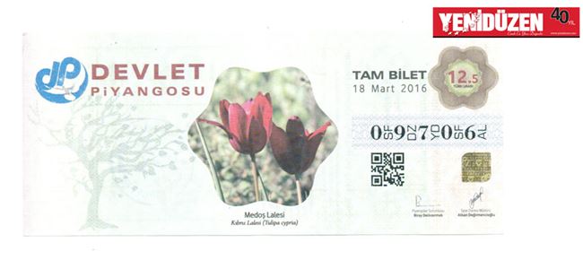 Devlet Piyangosu’nun yarınki çekilişi için bastırılan biletlerde, Kıbrıs adasına özgü endemik lale türü olan Kıbrıs lalesine yer verildi.,
