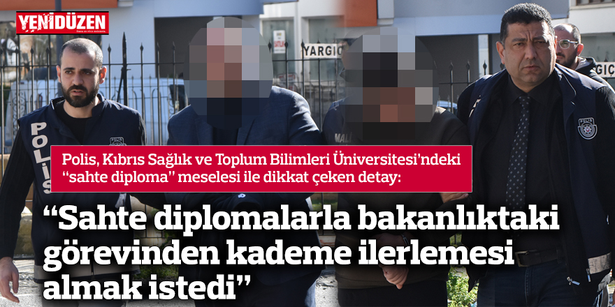 Polis 2022-2023 yılları arasında Kıbrıs Sağlık ve Toplum Bilimleri Üniversitesi’nde meydana gelen “sahte diploma” olayı ile ilgili olarak Mali Suçlarla Mücadele Amirliği tarafından yürütülen geniş çaplı soruşturma neticesinde, 6 Şubat 2024 tarihinde üniversitesinin Uluslararası Ofis Sorumlusu olan zanlı A.S. Ercan Havalimanı’ndan çıkış yapmak isterken tespit edilip tutuklandığını belirtti.