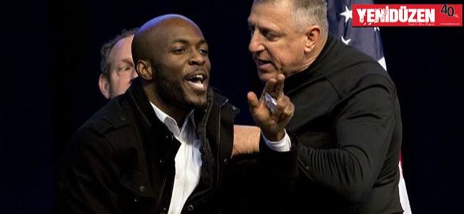Mitingin düzenleneceği salonda göstericiler ve Trump taraftarları arasında yoğun arbede yaşandı.